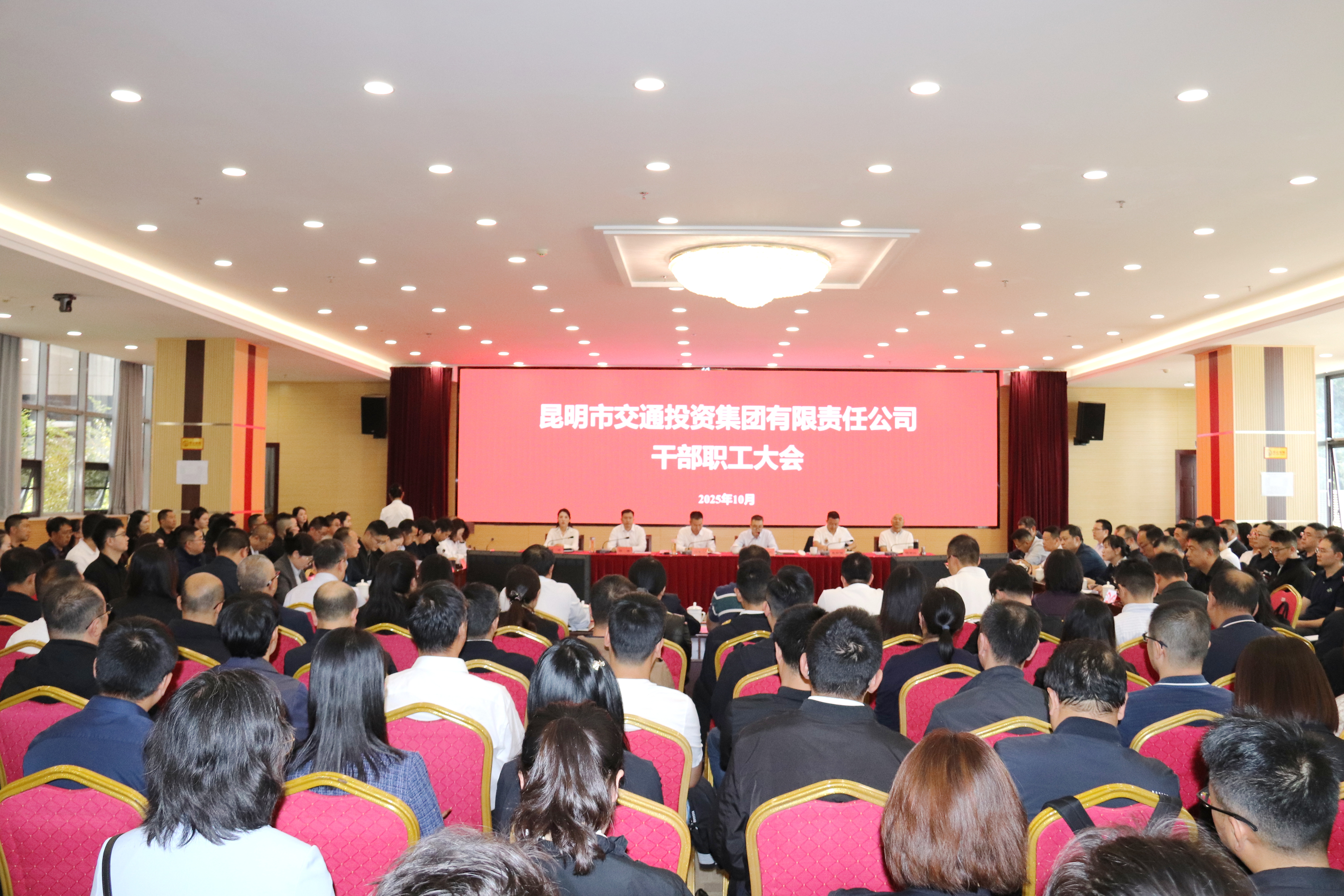 10月13日,昆明交投集团召开干部职工大会,集团党委副书记、副总经理郑忆主持会议,集团党政领导班子、总经理助理、各部门负责人,下属公司党政领导班子,新任中层副职及报名参加中层竞聘的全体人员参会。